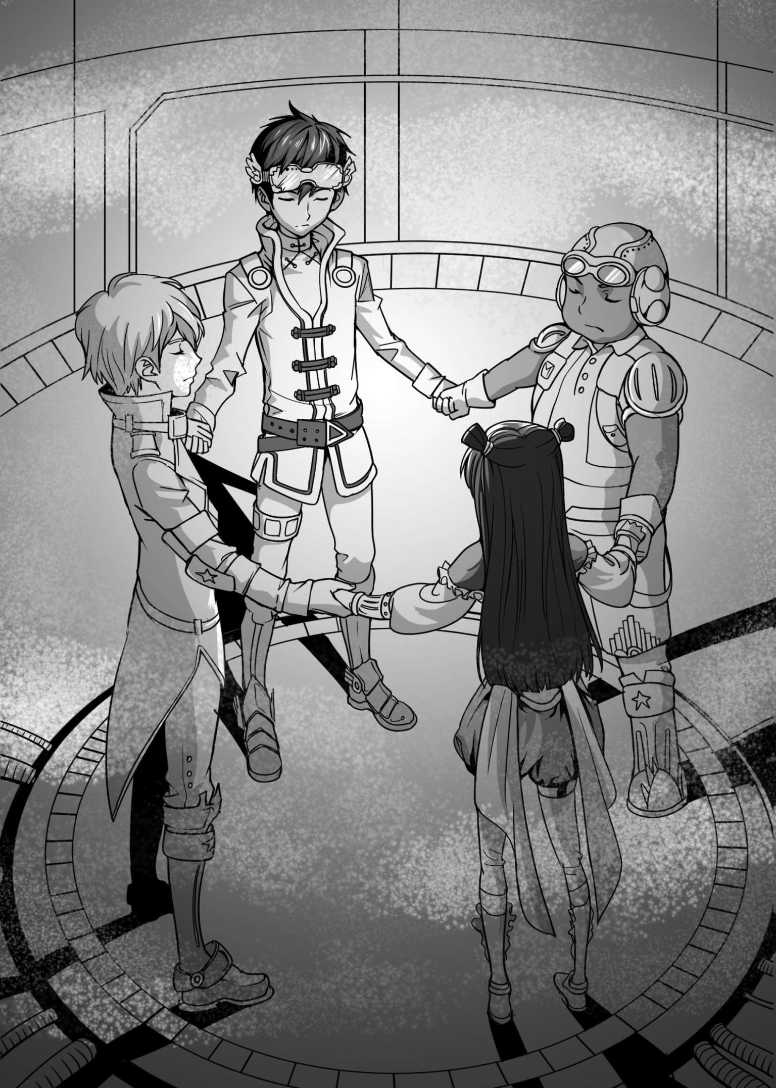 巫子涵、伊赛亚、白若曦和穆巴砂神情严肃地站在驾驶舱内,他们四人围成了一个圆圈,手交握在一起,集中全身的精力,以便承受“虫洞”技术所带来的空间扭曲力。