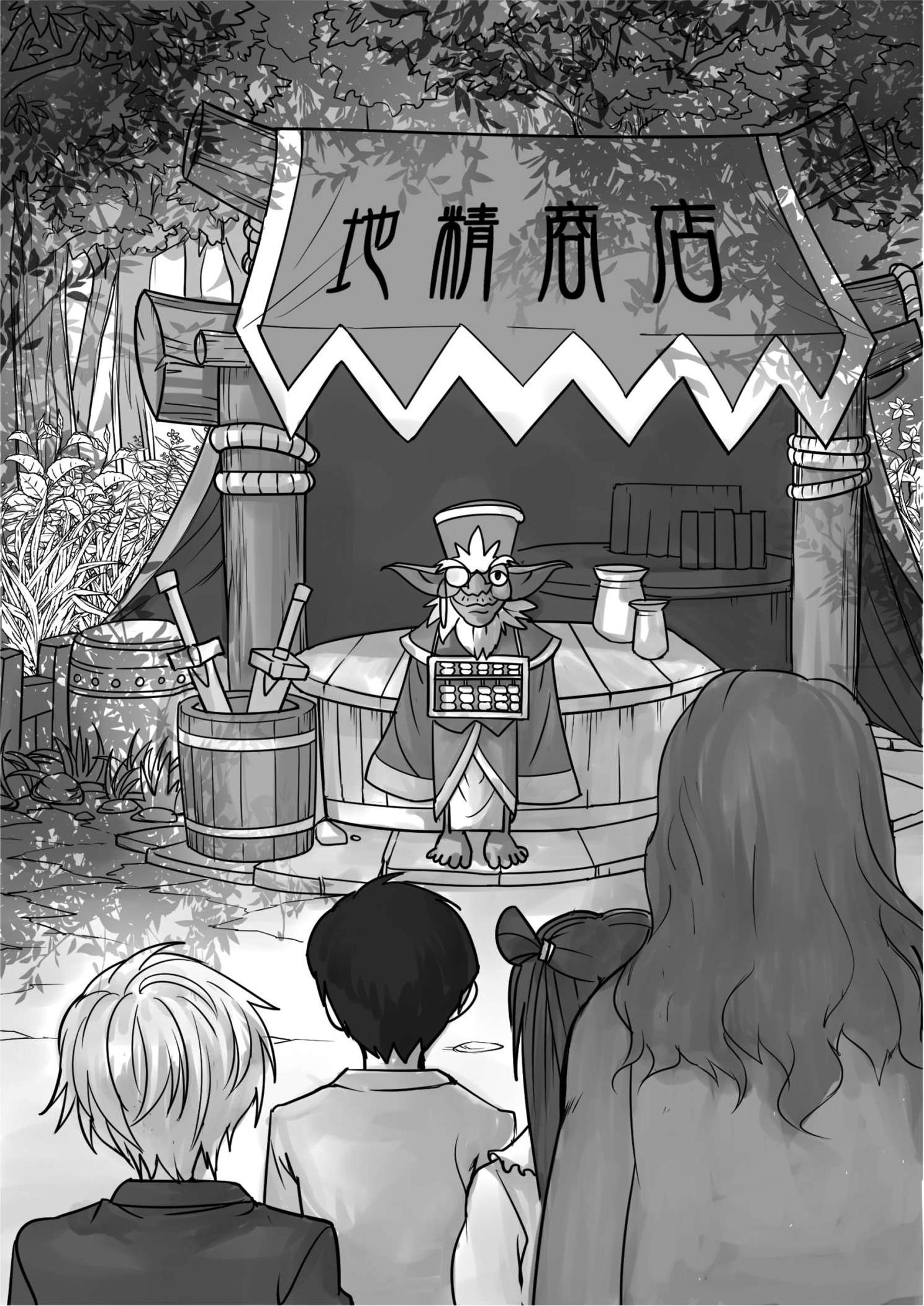 只见一间小小的店铺出现在大家面前,这家商店只有几平方米大,是用灰扑扑的木头搭建而成的。屋内光线昏暗,让人看不真切。门外一块半新不旧的招牌倒是格外显眼,上面写着四个大字——地精商店。
