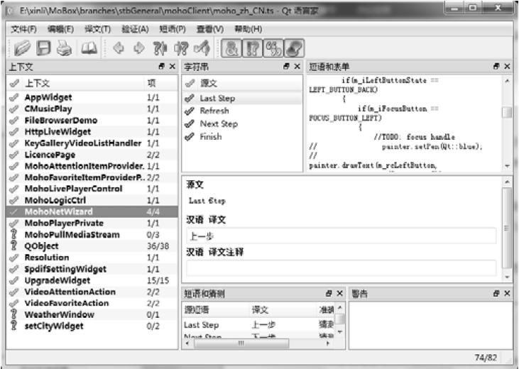 面2-46是笔者之前开发的一个项目使用Linguist翻译文本的截图,大家看了会对Linguist工具有个直观的印象。