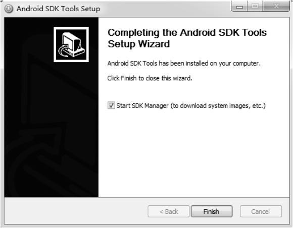 请单击“Next”按钮,向导说Android SDK Tools已经安装完成,还默认帮我们勾选了Start SDK Manager选项,如图3-23所示。