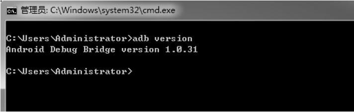 把adb所在文件夹“D:\Android\android-sdk\platform-tools”添加到系统环境变量Path中。打开命令行窗口,输入“adb version”,按回车键,之后应该看到图3-30所示界面。