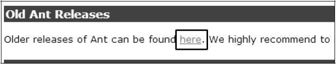 在左侧导航栏,选择Download->Binary Distributions,单击后在右侧页面找到Old Ant Releases一栏,如图3-32所示。