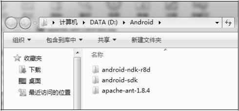 安装非常简单,只需要解压zip包到某个位置即可,建议和Android SDK放在同一个目录下,如“D:\Android\”,参见图3-34。