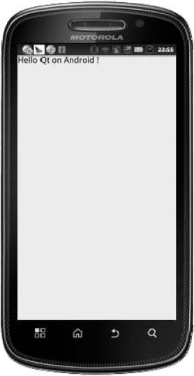 现在,终于可以停下来喘口气了,我们的第一个Qt on Android的应用“Hello Qt on Android”终于在真机上跑起来了。