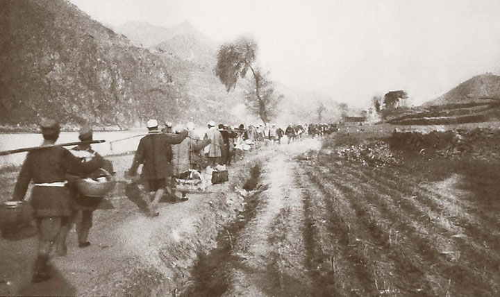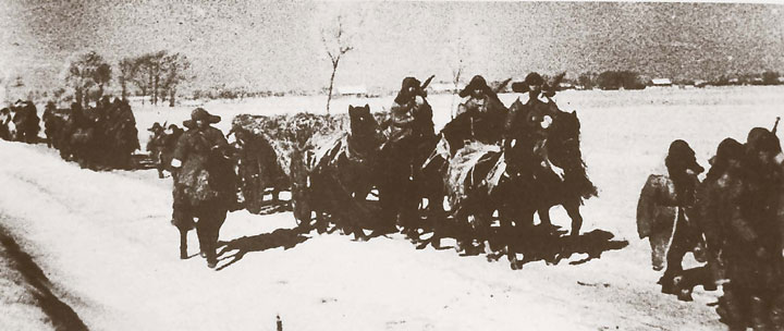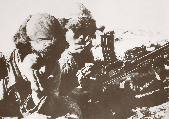 1948年1月,我军战士在公主屯阵地上一把炒面一口雪,待机歼灭敌人