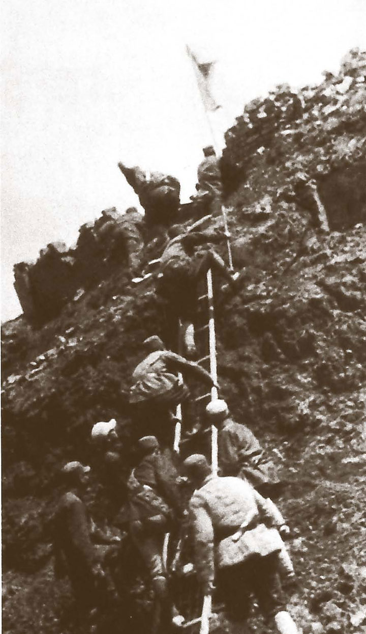 1947年6月11日至7月1日,我军围攻四平,此图为我军冲上四平城墙突破口的情景