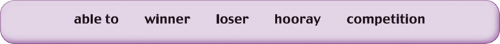1. your friend's name 2. competition 3. answer 4. questions 5. able to 6. how many? 7. how many? 8. the name of the person who was the winner 9. the name of the person who was the loser