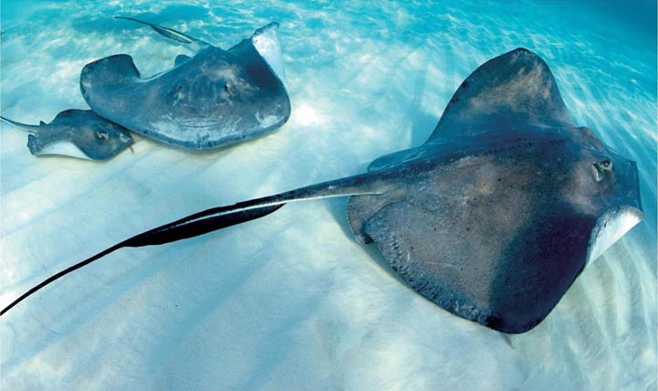 Stingrays are very diverse fish with flat bodies. They can be found in the tropical and subtropical areas of oceans all over the world. Their typical habitat is warm, shallow water, and they are often hidden on the ocean floor. There are 60 species of stingray — some of which are threatened.