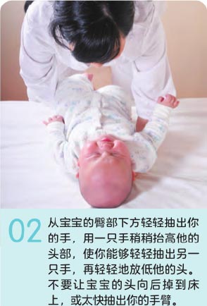 当宝宝醒来或者哭闹需要抱起时,你可以按下面方法做: