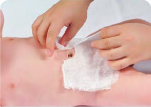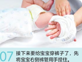 宝宝的脐带脱落前或刚脱落脐窝还没干燥时,一定要保证脐带和脐窝的干燥,因为即将脱落的脐带是一种坏死组织,很容易感染细菌。妈妈可以利用纱布来保证新生儿肚脐部位的干燥,方法如下: