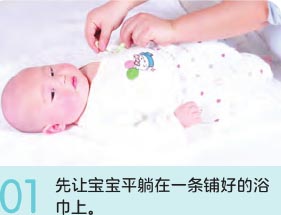 (4)最后,在给宝宝洗完澡以后,要立刻用浴巾裹住宝宝,轻轻擦干后围上尿布,穿上衣服,裹在包被中即可。应该注意的是,不要将宝宝紧紧地裹在包被中,应该让宝宝的手脚放松,让他可以自由地活动,这样有利于宝宝的呼吸和血液循环,可以促进宝宝更好地成长发育。