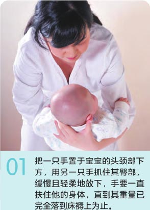 当需要把宝宝放在床上时,你可以按下面方法做: