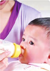 用奶瓶给宝宝喂奶时,要注意让宝宝含住整个奶嘴。