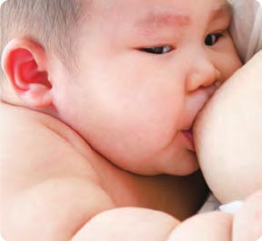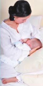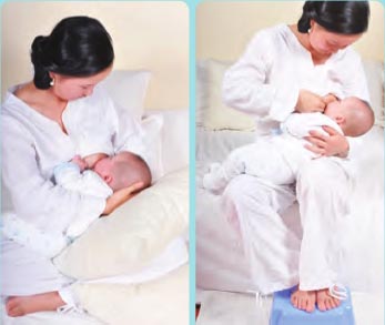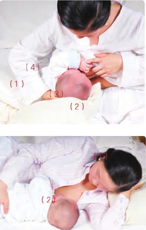 如果奶水充足,为防止宝宝呛奶,妈妈可采取下面的喂哺姿势: