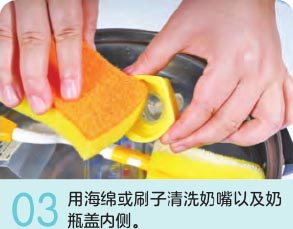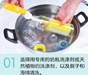 在清洗奶瓶的时候,妈妈可以按照以下方法进行操作: