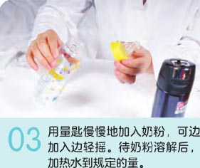 奶粉的冲调不可随意,一定要认真阅读说明书。有些爸爸妈妈总担心宝宝营养不够或是吃不饱,所以特意将奶冲得浓浓的。但过浓的配方奶是宝宝娇嫩的肠胃所承受不了的,会造成宝宝呕吐、腹泻。同样,配方奶太稀会导致宝宝营养不足,发育不良。