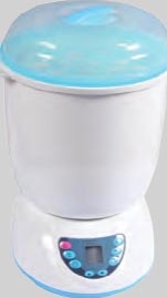 ☆然后将清洗干净的奶瓶、奶嘴、奶瓶盖等物品一起放入蒸汽锅中,按上开关,待其消毒完毕会自动切断电源。