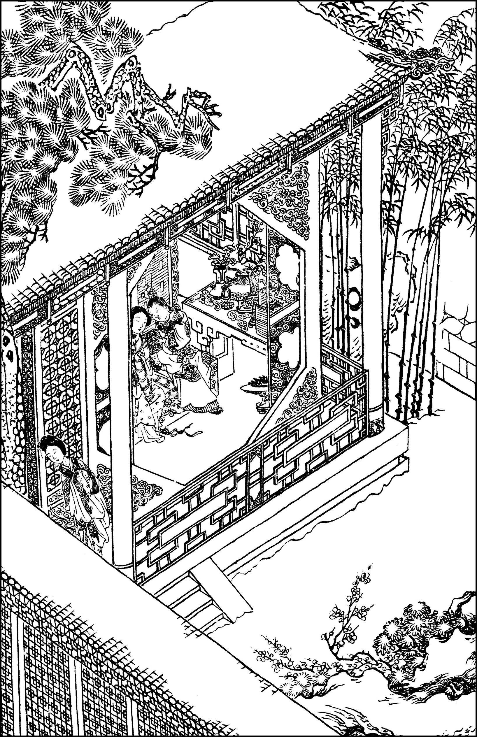 却说宝玉因送贾母回来,待贾母歇了中觉,意欲还去看戏取乐,又恐扰的秦氏等人不便。因想起近日薛宝钗在家养病,未去亲候,意欲去望他一望。若从上房后角门过去,又恐遇见别事缠绕,再或可巧遇见他父亲,更为不妥,宁可绕远路罢了。当下众嬷嬷丫鬟伺候他换衣服,见他不换,仍出二门去了。众嬷嬷丫鬟只得跟随出来,还只当他去那府中看戏。谁知到了穿堂,便往东向北,绕厅后而去。偏顶头遇见了门下清客相公