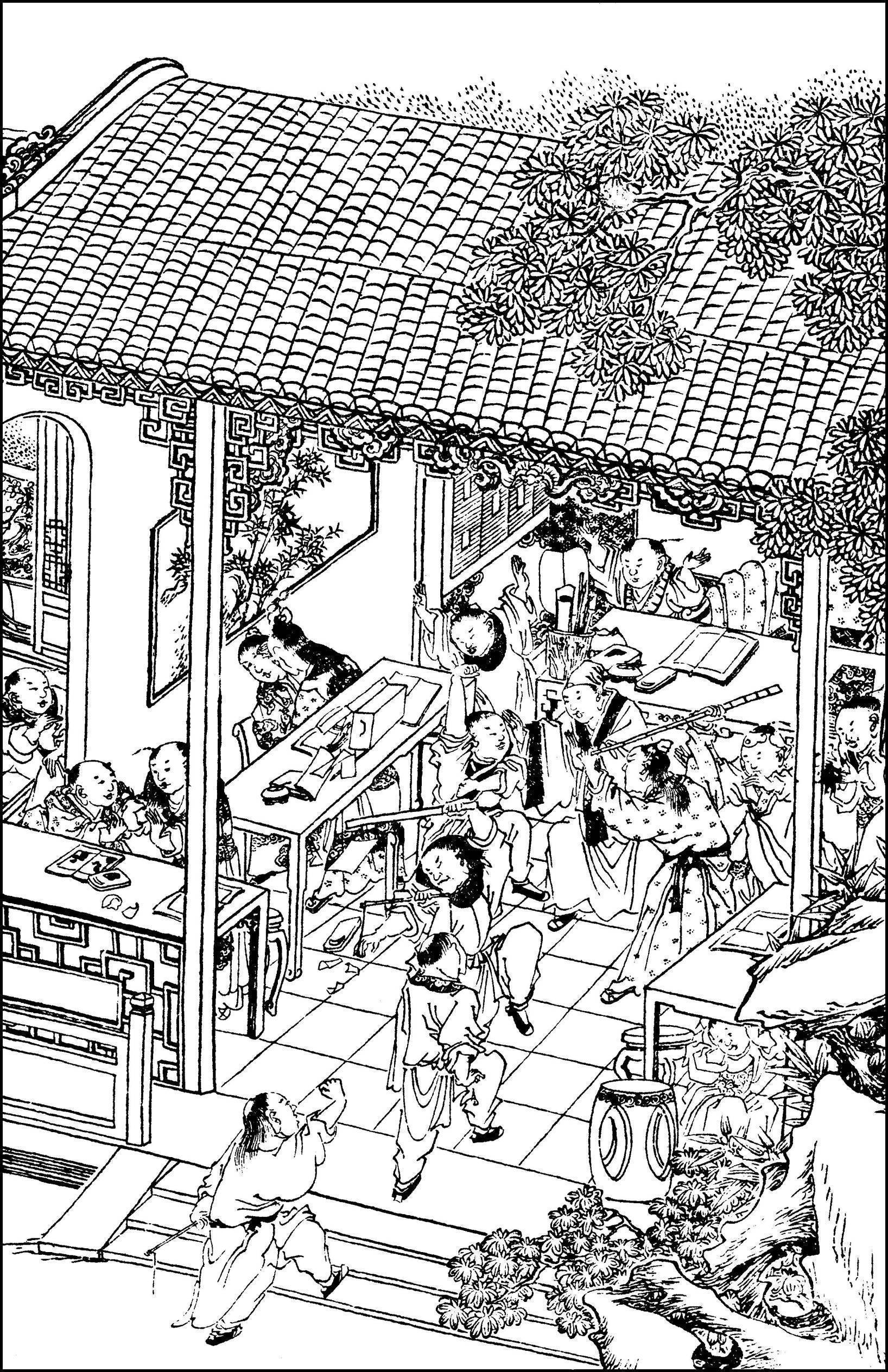 可巧这日代儒有事,早已回家去了,只留下一句七言对联命学生对了,明日再来上书