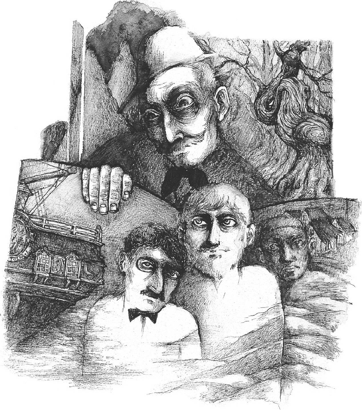 第四个理由嘛,也是最后一个理由,就是我想向世人讲述一个我所知道的最离奇的故事。这事说来有点儿不可思议,尤其整篇故事里你看不到一个女人——除了弗拉塔。噢,打住吧!还有一位加加乌拉呢,如果她也算作一位女人,而不是妖精的话。然而,她如今至少有一百岁了,不可能结婚了,因而,我也就把她刨除在外了。无论如何我可以向你担保,在这篇故事里你看不到一点儿脂粉气。