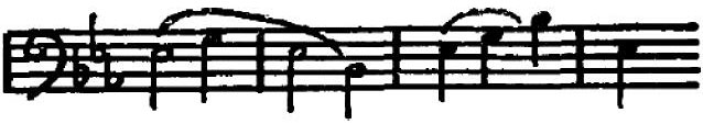 以一般而论,贝多芬的旋律是非常单纯的;倘若用线来表现,那是没有多少波浪,也没有多大曲折的。往往他的旋律只是音阶中的一个片段(a fragmentofscale),而他最美最知名的主题即属于这一类;如果旋律上行或下行,也是用整音音程的(diatonic interval)。所以音阶组成了旋律的骨干。他也常用完全和弦的主题和转位法(inverting)。但音阶,完全和弦,基调的基础,都是一个音乐家所能运用的最简单的原素。在旋律的主题(melodictheme)之外,他亦有交响的主题(symphonic theme)作为一个“发展”的材料,但仍是绝对的单纯:随便可举的例子,有《第五交响乐》最初的四音符,(sol-sol-sol-mib)或《第九交响乐》开端的简单的下行五度音。因为这种简单,贝多芬才能在“发展”中间保存想象的自由,尽量利用想象的富藏。而听众因无需费力就能把握且记忆基本主题,所以也能追随作者最特殊最繁多的变化。
