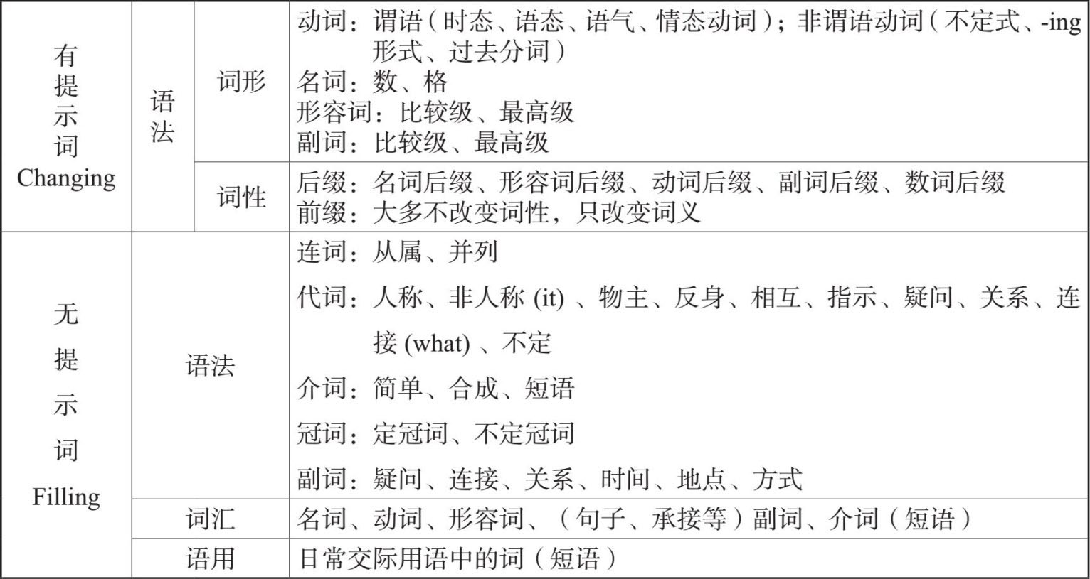 对于语法填空题中的10个空,考生只要把握两种类型,一种是无提示词的空,另一种是有提示词的空。无提示词一般考查:冠词、介词、连词、代词、助动词、固定搭配等;有提示词一般考查:谓语动词、非谓语动词、形容词、副词、名词等。具体分为四个方面的内容: