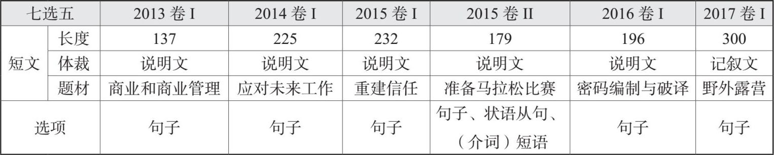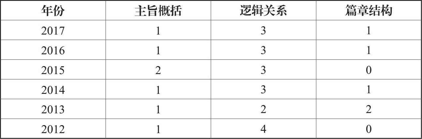 近6年全国卷Ⅰ阅读七选五考点情况分析一览表