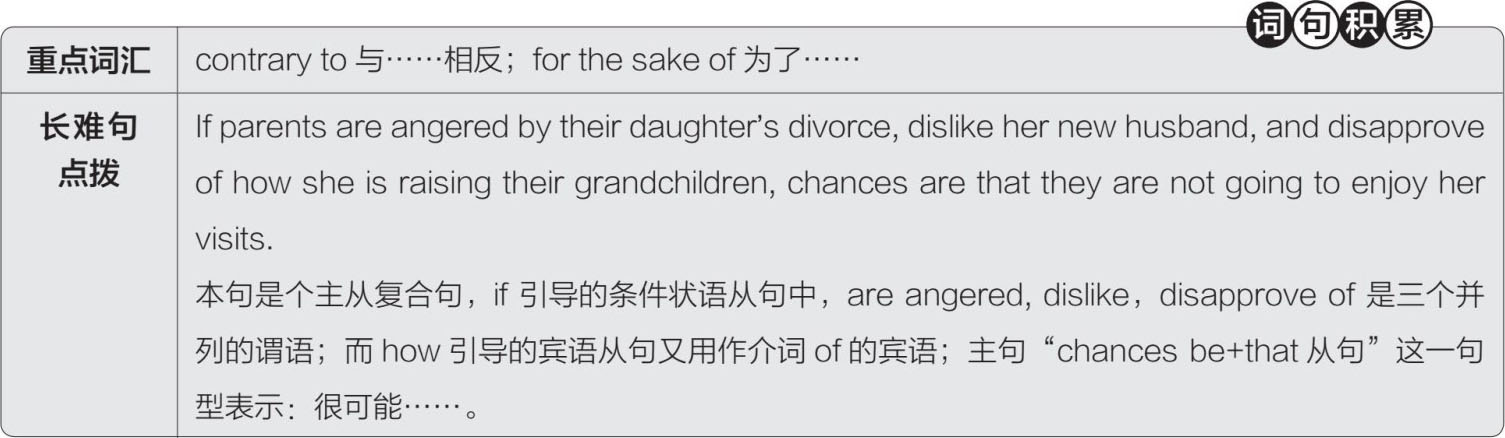 Increasingly, researchers have begun to look at the quality of relationships, rather than at the frequency of contact, between the elderly and their children. If parents and children come to a compromise 8 taking good care of children, they are likely to enjoy each other's company. Disagreements on such matters can turn out 9 (be) problems. If parents are angered by their daughter's divorce, dislike her new husband, and disapprove of how she is raising 10 grandchildren, chances are that they are not going to enjoy her visits.