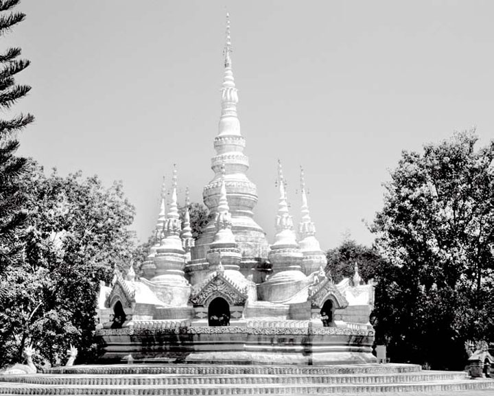 在西双版纳,勐泐大佛寺是所有佛寺中最大的,也是地位最高的,是傣家人心目中的圣地。从万佛塔前广场俯视景洪市,旖旎的热带风光尽收眼底。