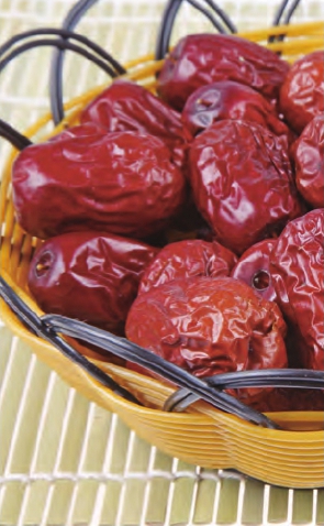 按照中医五行学说,红色为火,为阳,故红色食物进入人体后可入心、入血,大多具有益气补血和促进血液、淋巴液生成的作用。研究表明,红色食物一般具有极强的抗氧化性,富含番茄红素、单宁酸等,可以保护细胞,具有抗炎作用。如辣椒等可促进血液循环,缓解疲劳,驱除寒意,给人以兴奋感。红色药材,如枸杞子对老年人头晕耳鸣、精神恍惚、心悸、健忘、失眠、视力减退、贫血、须发早白、消渴等多有裨益。此外,红色食物还能为人体提供丰富的优质蛋白质和矿物质、维生素,能大大增强人的心脏和气血功能。因此,经常食用一些红色果蔬,对增强心脑血管活力、提高淋巴免疫功能颇有益处。代表药材和食材:红枣、枸杞子、牛肉、猪肉、羊肉、赤小豆、草莓、西瓜等。