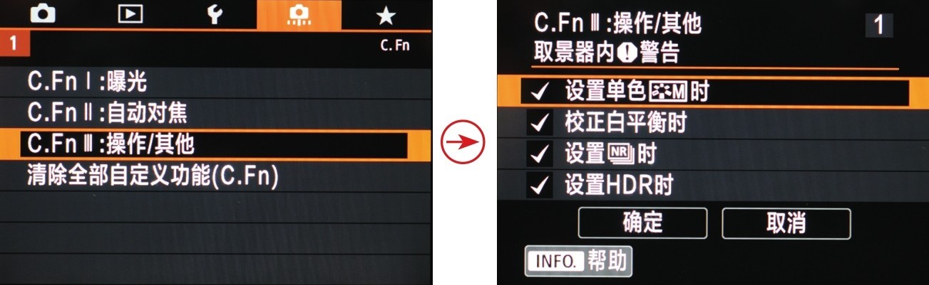 1 在自定义菜单中点击选择C.Fn Ⅲ:操作/其他选项