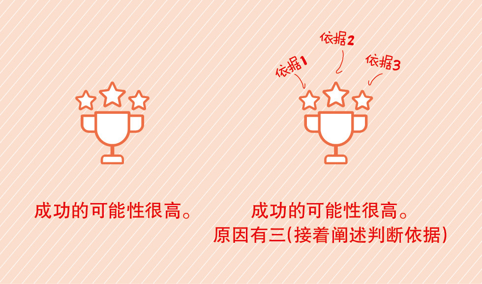 前面我们已经讲过,如果断言之后能紧跟着阐述依据的话,就会更有说服力。