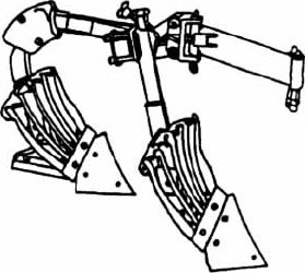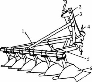 犁架的前端与拖拉机悬挂机构连接。犁的起落和耕深调节由拖拉机液压机构操纵;空行时悬挂在拖拉机后面,犁的重量由拖拉机承担。悬挂犁的重量轻,机动灵活,适于果树行间耕作(图2-1)。