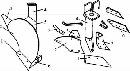 主犁体的作用是切割、破碎和翻转土堡。主犁体由犁铧、犁壁、犁柱和犁侧板等组成(图2-4)。