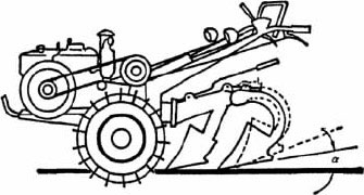 犁的前端通过两根插销与GN121型手扶拖拉机的牵引装置相连接(图2-2)。这种犁耕机组,体积小、机组短、机动灵活性好,耕深可达16~20cm,很适合南方小规模果园的耕作要求。