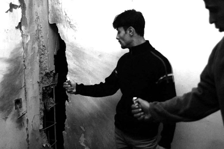 /两只打火机,加上我的闪光灯,照出墙上1米多长的窟窿——导弹从这里穿墙而过