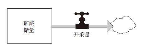 例如,地下的矿藏是一个存量,随着该矿藏被人们发现和开采,会产生一个矿藏开采的流量。由于矿藏的形成(流入量)可能是数百万年前各种复杂地质变化的综合作用,很难全面表述,因此这里用一个简单的存量-流量图进行描述(如图1—2所示,图中没有画出流入量)。