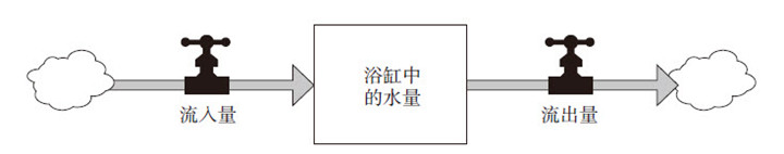 图1—5 浴缸系统的结构——一个存量、一个流入量和一个流出量