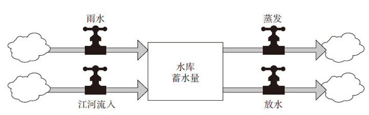 大坝后面水库中的水也是一个存量,流入量有雨水和江河的来水,流出量包括水的蒸发和堤坝放水(如图1—3所示)。