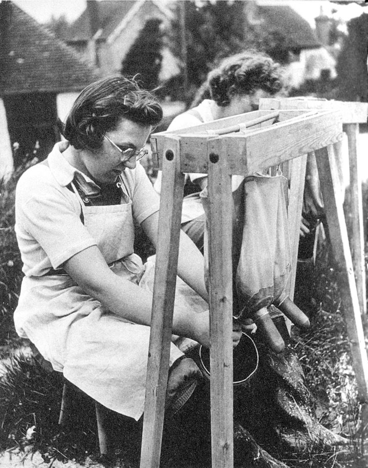 伦敦百货商店的雇员在学习挤牛奶