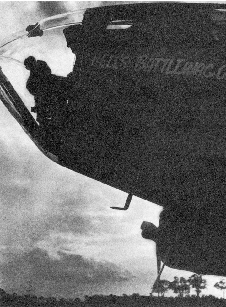 我从来就不知道。在不执行任务的时候,机组人员有严格的命令将这个小黑点包起来。毕晓普的投弹手提前五分钟揭开了包着的油布。我试图解释我对飞机鼻子的兴趣完全是由于它和毕晓普中尉的鼻子很像。斯普纳先生解释说由于在过去一周里没能找到我让我把报道交由美军审查处审查,所以他给英国皇家空军看了这些照片。他们没有对那个小黑点提出任何异议。
