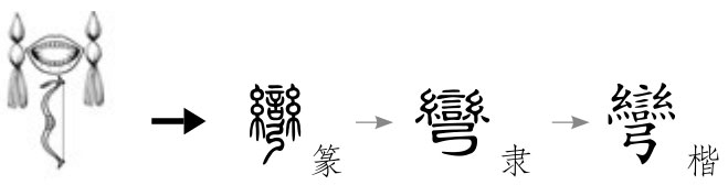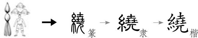 从小篆字形看,左边是“糸”,表示绢帛;右边是“尧”,上面是三个“土”,下面是一个人,表示用土烧制陶器。制陶器时需将陶泥均速转动使其成型,那“绕”字可以理解为将线围着一个中心一圈一圈地缠上,类似于制陶时转动的样子。