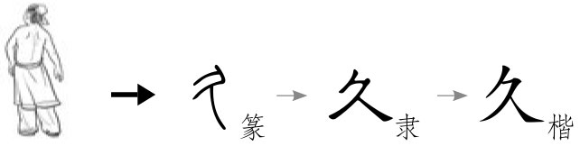 “久”的本义是指从背后作针灸。长途迁移为“千”,驻足等待为“久”。现在,“久”也指时间长,如“久远”等。