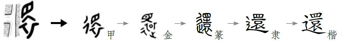 “还”是个形声字,本义是返回。甲骨文的“还”,左半边的“彳”是形旁,表示与行走有关;右半边的“瞏”(huán)作声旁。金文的“还”,在中间加了个圆环的形状。现在,“还”引申为归还、偿还。