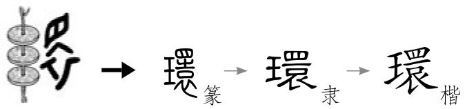“环”字本义是指圈形的璧玉,是一种穿孔、可以套戴转玩的圈状美玉。玉圈的粗细完全均匀一致的叫作“环”。繁体字为“環”,字形采用“王”(玉)作形旁;“睘”作声旁,表示回望、转着圈看。现在,“环”也指围绕,如“环绕”等。