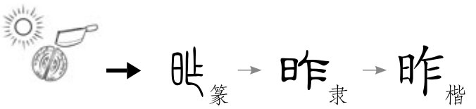 “昨”字本义是累计逝去的日子。从篆书字形来看,“昨”是一个形声字,字形采用“日”作形旁,表示时间;采用“乍”作声旁,表示刚刚。“昨”也泛指往日,表示过去的日子的意思,如“昨儿个”。