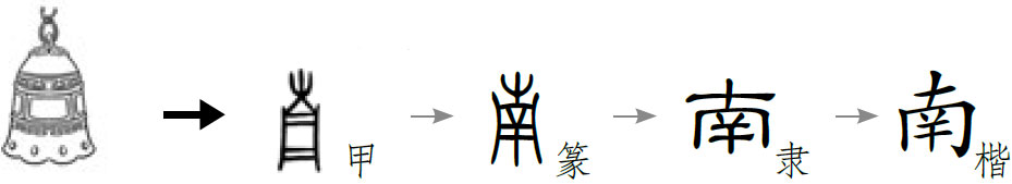 南原本是一种类似编钟的乐器,后来变成了专指方向的名词。 |