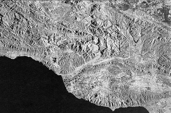 图 2.23 加利福尼亚洛杉矶市的机载侧视雷达镶嵌图。