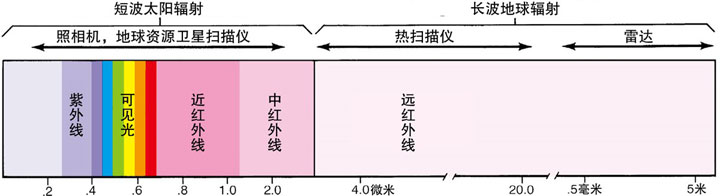 对于电磁波谱上大于1.2微米(1微米就是1/1,000,000米)的波长,必须使用照相胶片以外的传感器。传感器可能是被动的,记录来自地球反射的辐射,也可能是主动的,自行发射能量。照相机是被动的,而雷达工具自己产生能量,并记录从地面向它反射回来能量的数量。尽管地面景象被记录为数字形式,但是打印成照片后即可传播。