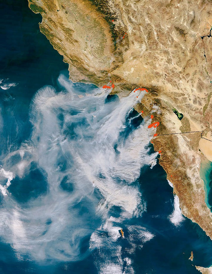 图 2.24 2003年10月26日拍摄的加利福尼亚南部卫星照片。